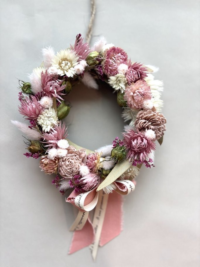 ※ すべて自然素材を使いますので、ドライフラワーのお取り扱い説明など商品に添付いたします。