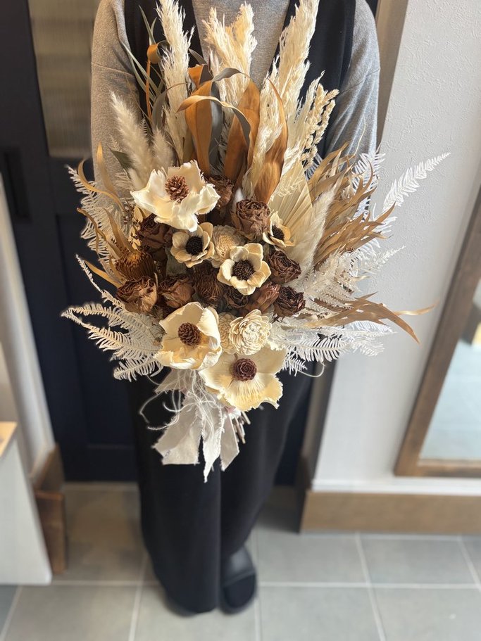 ※ すべて自然素材を使いますので、ドライフラワーのお取り扱い説明など商品に添付いたします。